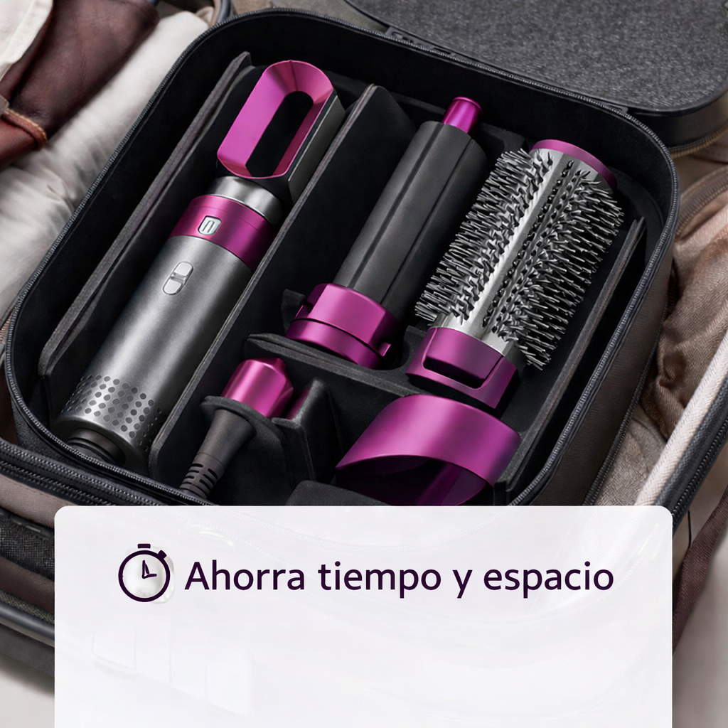 Incluye cinco cabezales diseñados para adaptarse a cualquier estilo: alisado natural, rizos suaves, ondas con volumen o un acabado pulido mientras secas tu cabello.